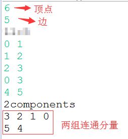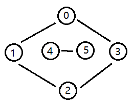 无向图的极大连通子图称为连通分量。极大表示连通子图不能再大,再多一个顶点就不连通了。如下图 "0、1、2、3" 就是一个连通分量,"4、5" 是另一个连通分量。