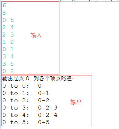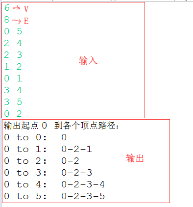 寻找路径是指从起点 s 到与 s 连通的每个顶点之间的路径。依然以图 2 为例,寻找的是起点 0 到各个连通顶点的路径,例如 0 ~ 1 的路径是 0->2->1,0 ~ 5 的路径是 0->2->3->5 等。